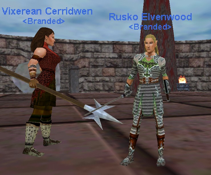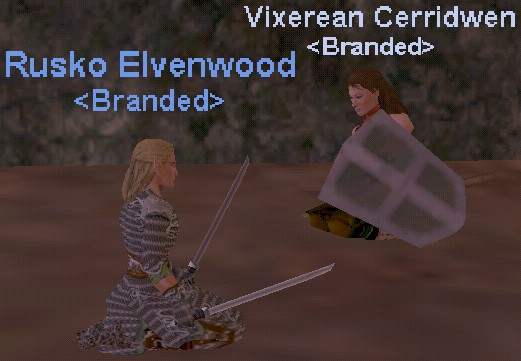 Vixerean shouts, 'My Dearest Rusko from the first day that we fought side by side in the frozen land of Permafrost I have felt a bond between our souls. As we traveled across Norrath and Luclin fighting beside each other the bond has grown stronger. To you Rusko Elvenwood, I Vixerean Cerridwen pledge my heart and soul. I will walk by your side throughout this life, take care of you to the best of my magical abilities and never leave you even in death.' |