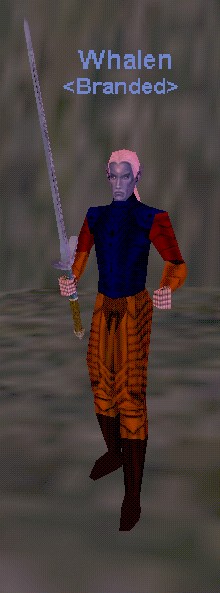 Whalen19 DarkElf ShadowKnight He may be young, but he is wise beyond his time. Whalen has come from the dark side to our guild. He is related to the founder of Branded, the retired halfling druid, Xunik. Here he shows us his dress clothes and a VERY big knife! Count on Whalen to lead raids and mediate training events and duels. |